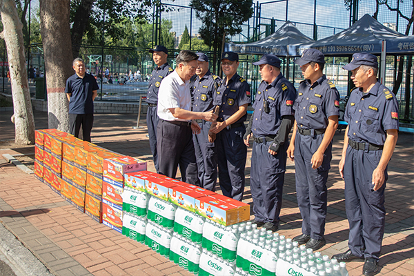 8月11日上午,党委书记张志坚深入校园防汛重点部位,检查指导防汛措施落实情况,并慰问坚守在防汛值班一线的干部职工,学校有关单位负责人参与检查慰问。